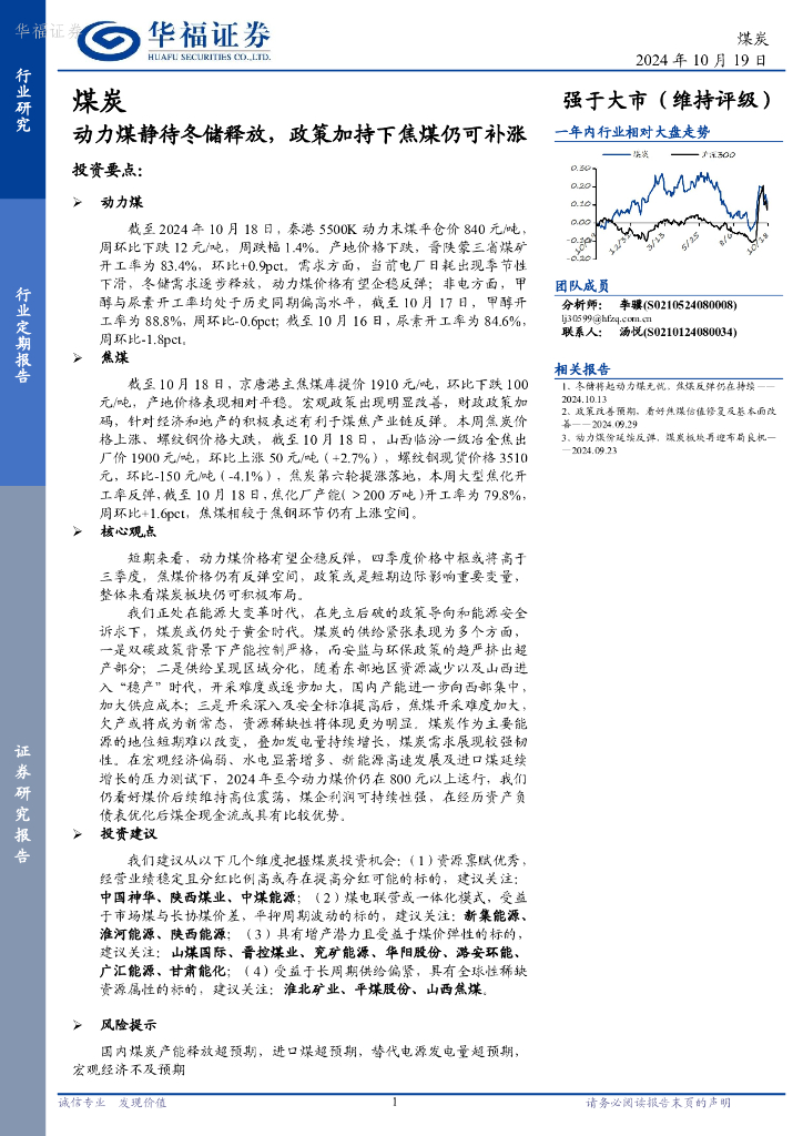 华福证券:煤炭行业定期报告:动力煤静待冬储释放,政策加持下焦煤仍可补涨.pdf