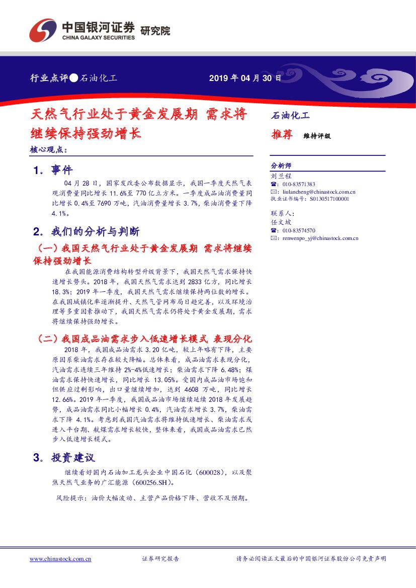 中国银河:石油化工行业点评:天然气行业处于黄金发展期 需求将继续保持强劲增长.pdf