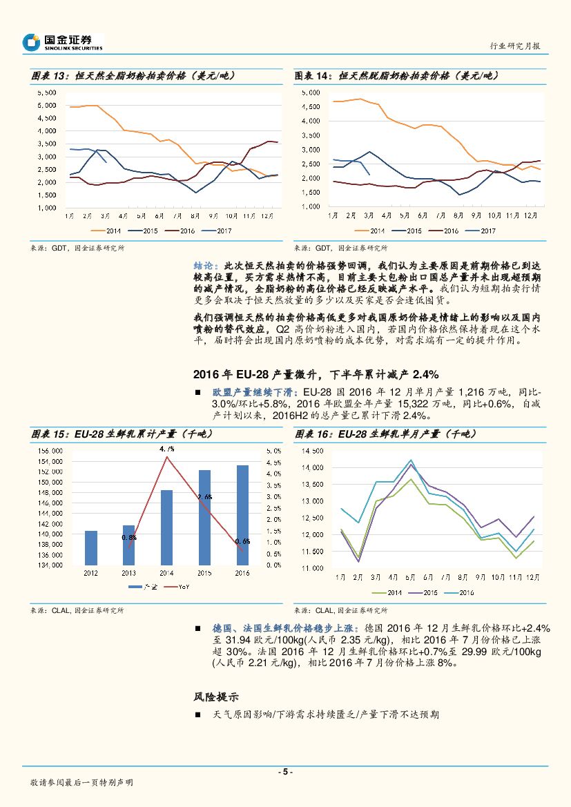 国金证券:原奶行业研究月报:国内原奶价格稳定,恒天然拍卖回调.pdf