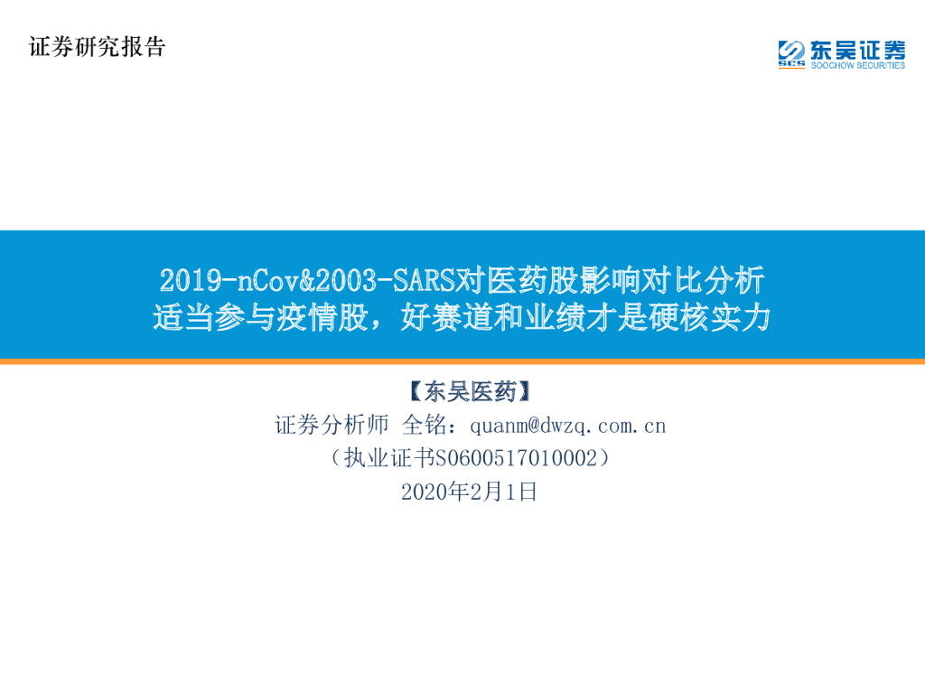 东吴证券:2019-nCov&2003-SARS对医药股影响对比分析:适当参与疫情股,好赛道和业绩才是硬核实力.pdf