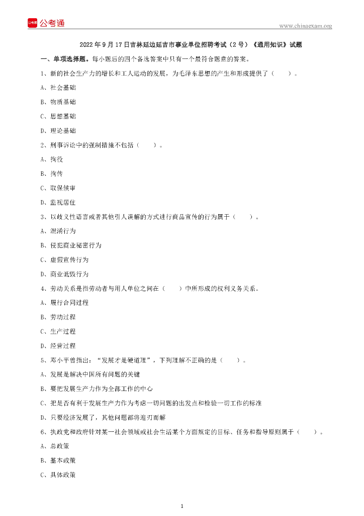 2022年9月17日吉林延边延吉市事业单位招聘考试(2号)《通用知识》试题.pdf