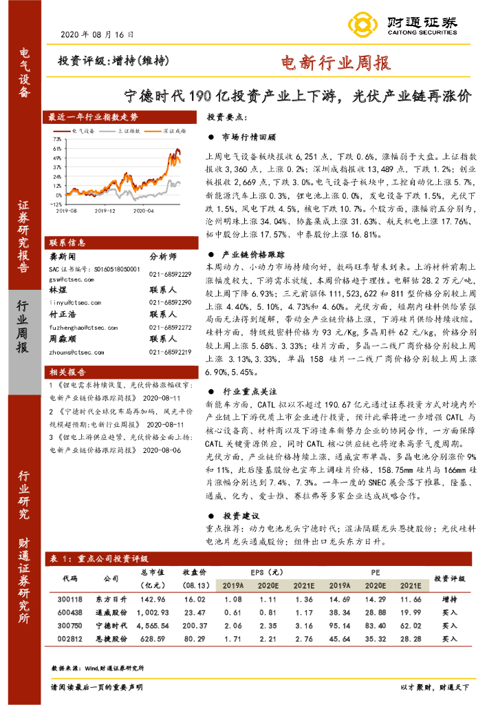 财通证券:电新行业周报:宁德时代190亿投资产业上下游,光伏产业链再涨价.pdf