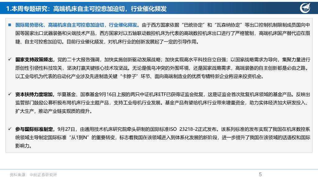中航证券:先进制造行业周报:高端数控机床自主可控愈加迫切,产业链国产替代迎来加速.pdf