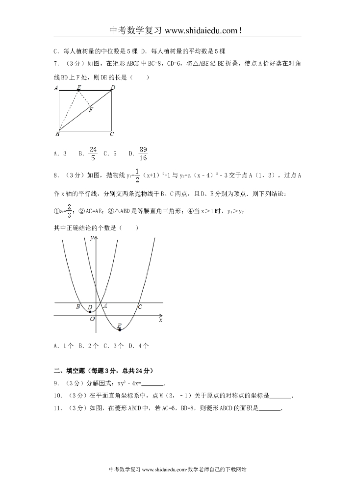 四川省宜宾市中考数学试卷(含答案解析版).doc