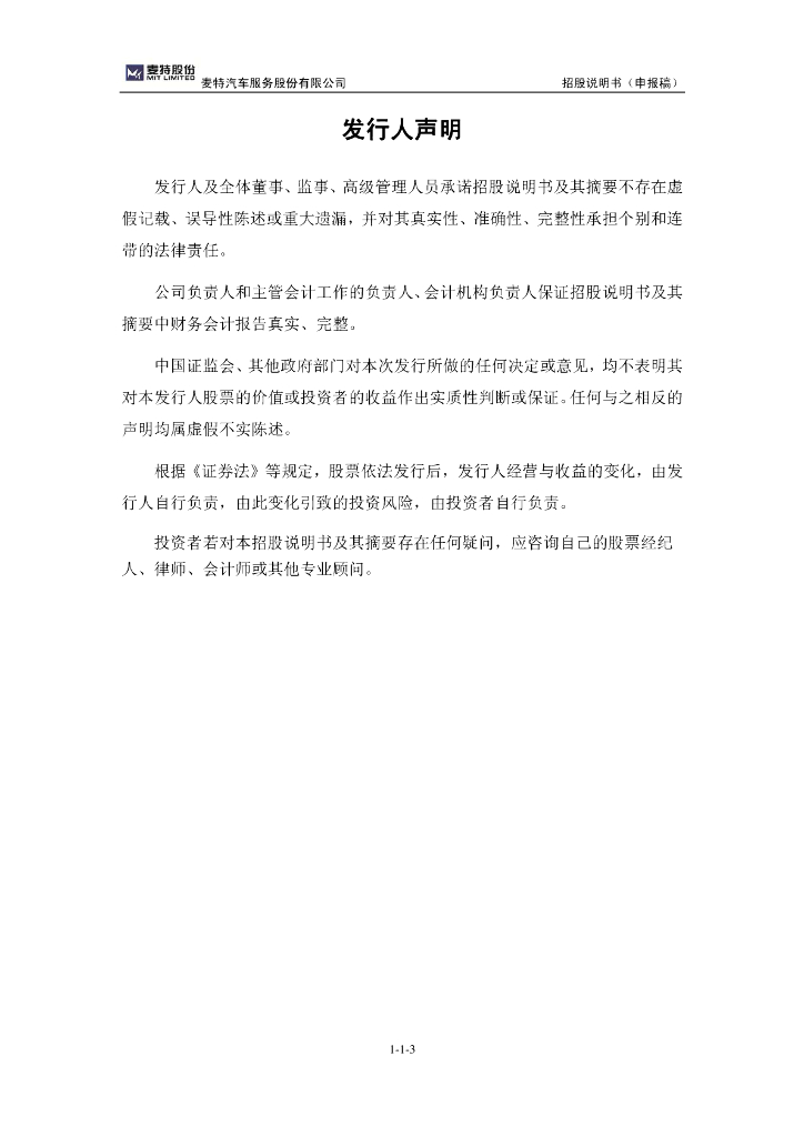 麦特汽车服务股份有限公司深交所主板IPO上市招股说明书.pdf