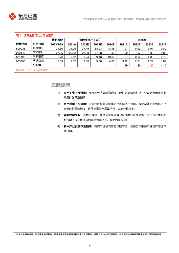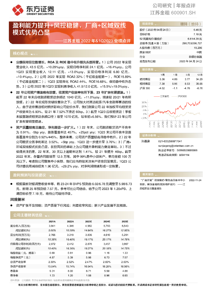 东方证券:江苏金租2022年&1Q2023业绩点评:盈利能力提升+风控稳健,厂商+区域双线模式优势凸显.pdf