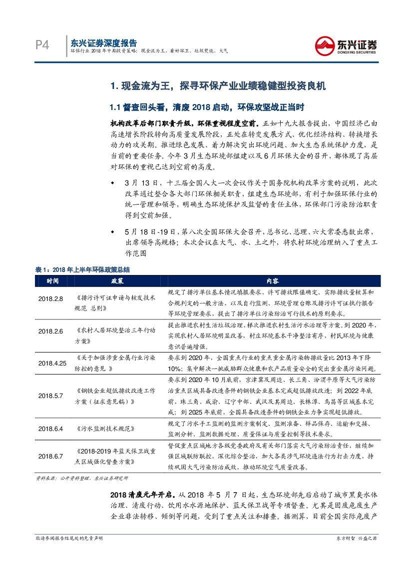 东兴证券:环保行业2018年中期策略报告:现金流为王,看好环卫、垃圾焚烧、大气.pdf