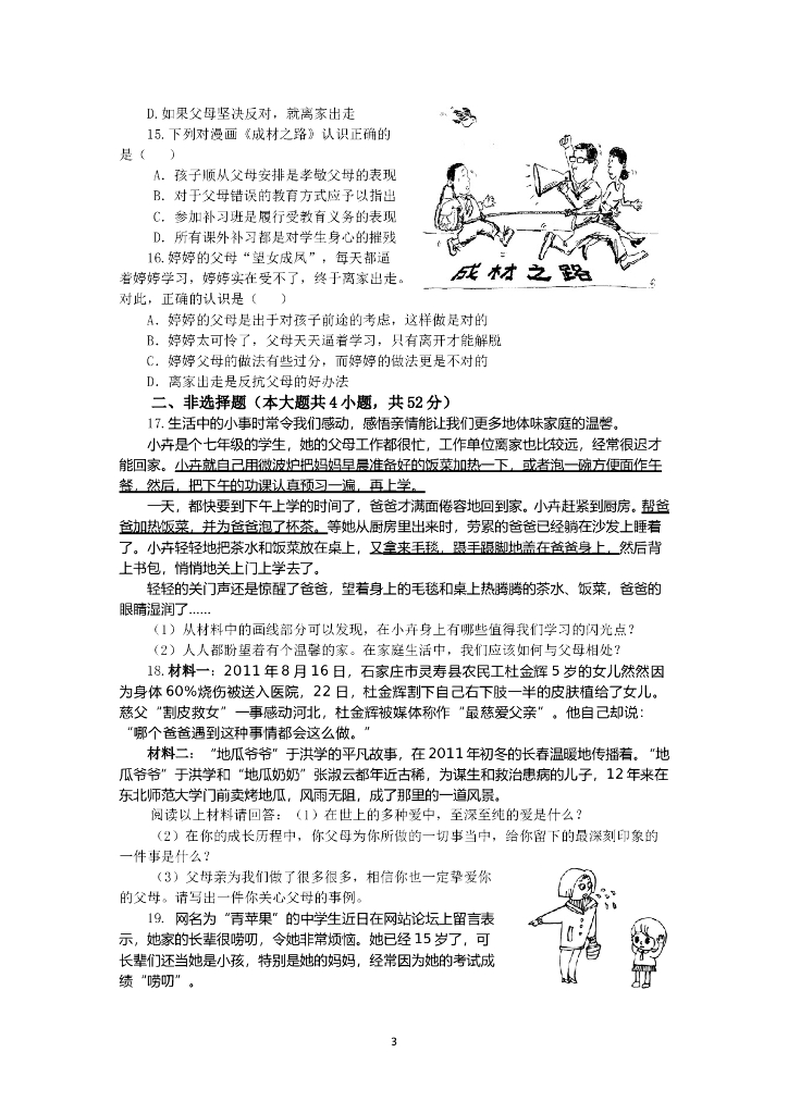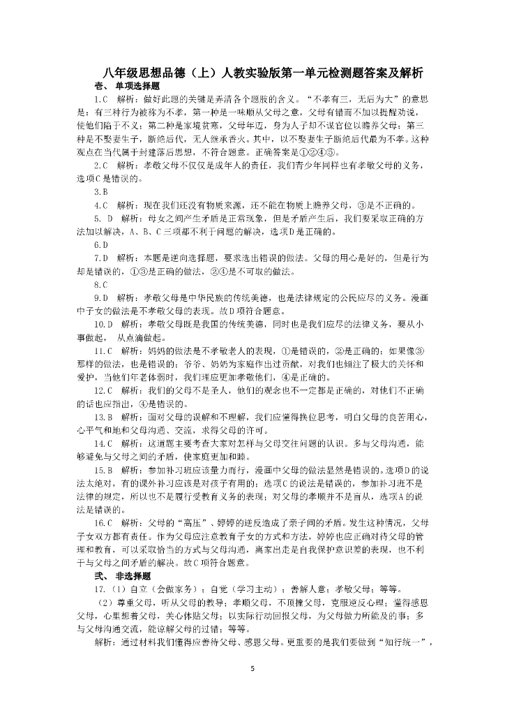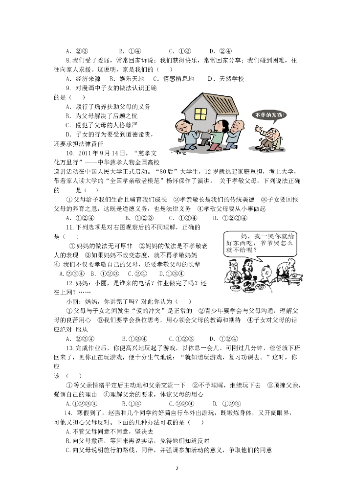 人教实验版八年级政治上册《第1单元 相亲相爱一家人(2)》检测题(含答案详解).doc