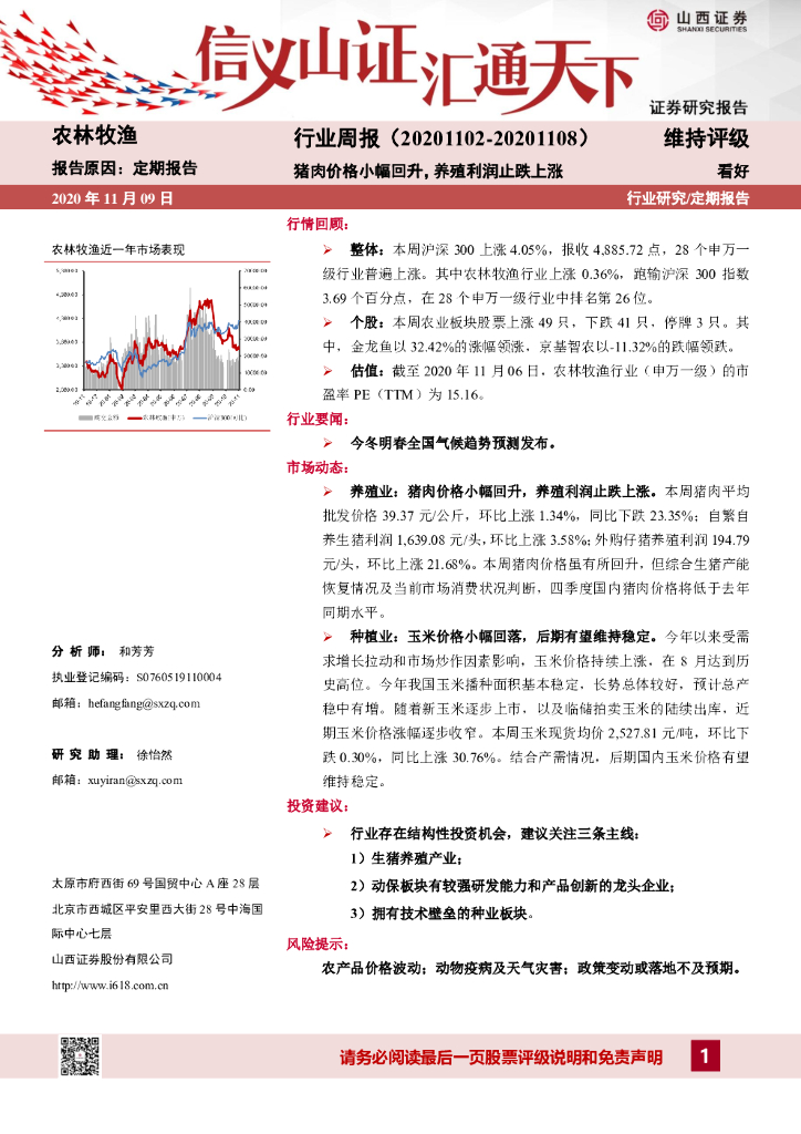 山西证券:农林牧渔行业周报:猪肉价格小幅回升,养殖利润止跌上涨.pdf