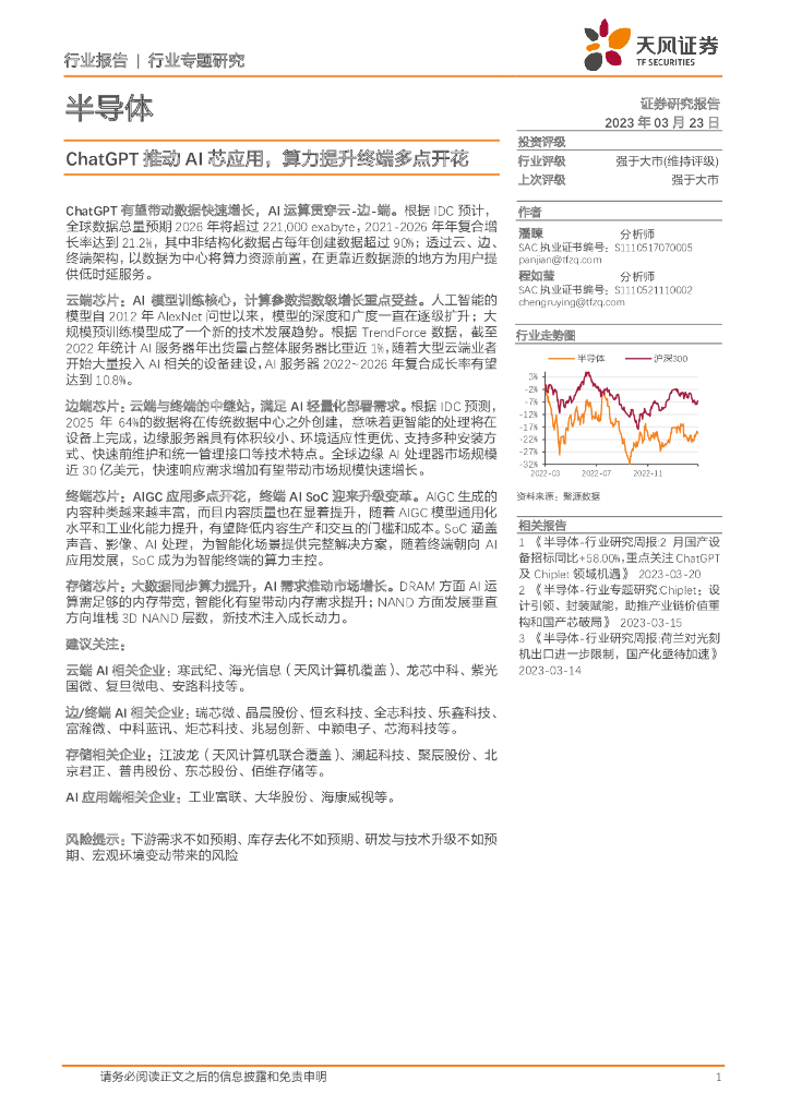 天风证券:半导体行业专题研究:ChatGPT推动AI芯应用,算力提升终端多点开花.pdf