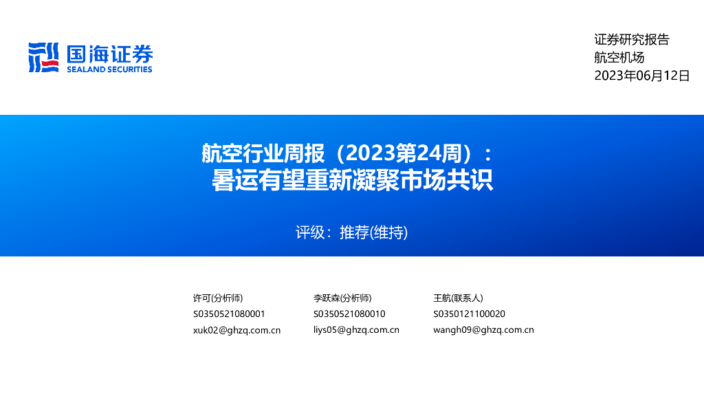 国海证券:航空行业周报(2023第24周):暑运有望重新凝聚市场共识.pdf