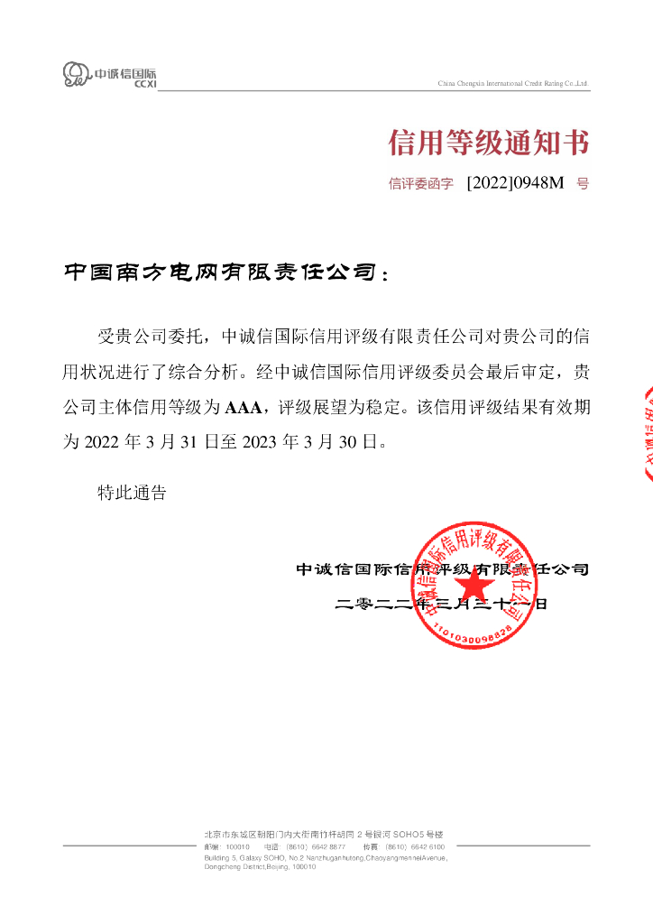 中诚信:2022年度中国南方电网有限责任公司信用评级报告.pdf