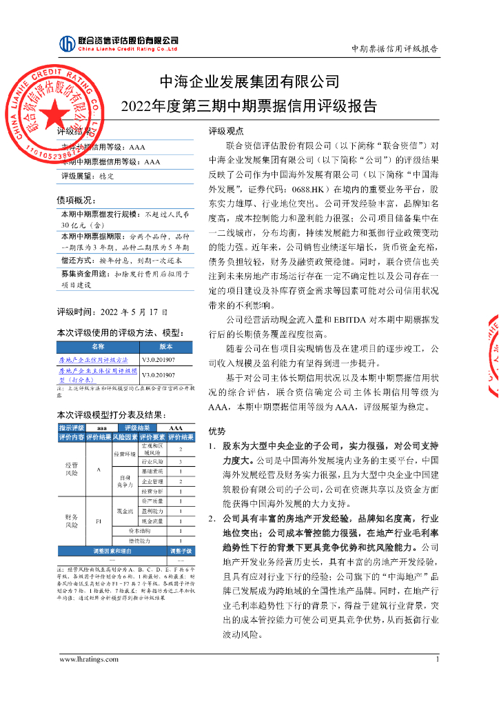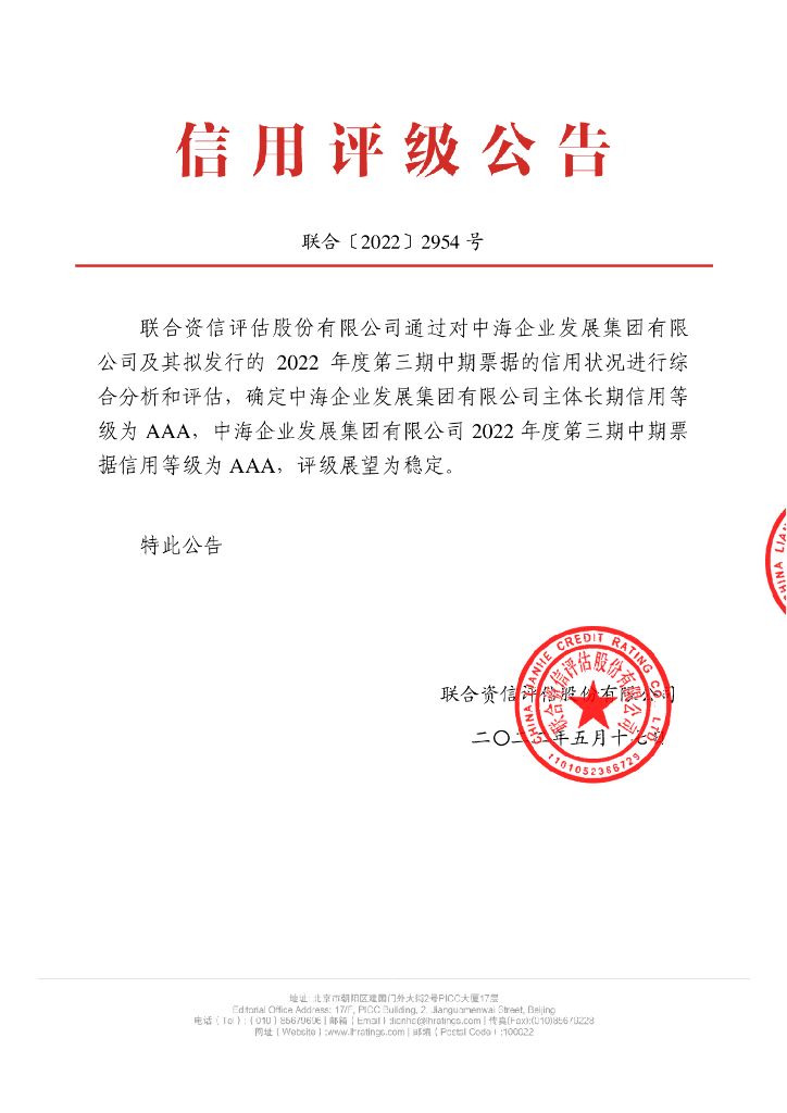 联合资信:中海企业发展集团有限公司2022年度第三期中期票据信用评级报告.pdf