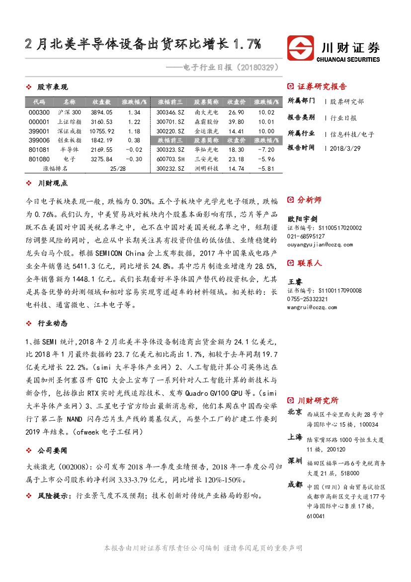 川财证券:电子行业日报:2月北美半导体设备出货环比增长1.7%.pdf