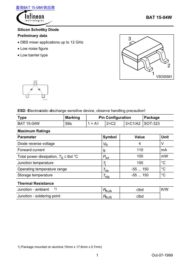 Infineon BAT 15-04W 数据手册.pdf