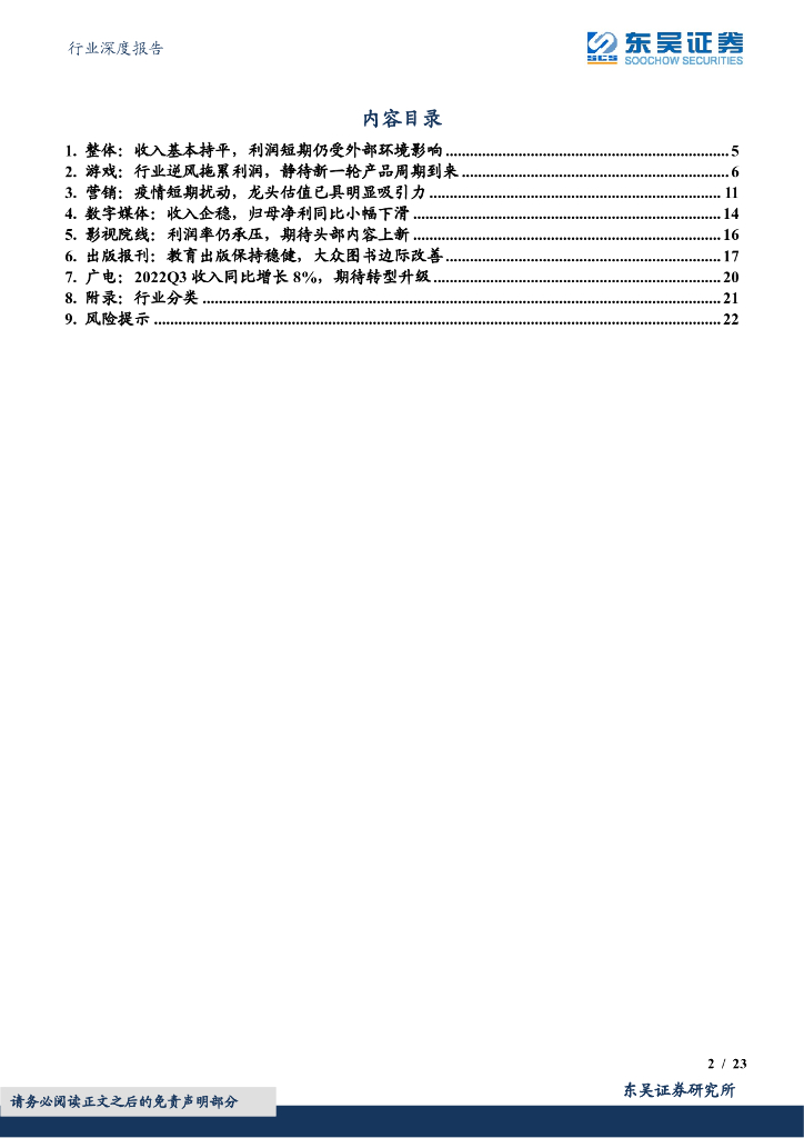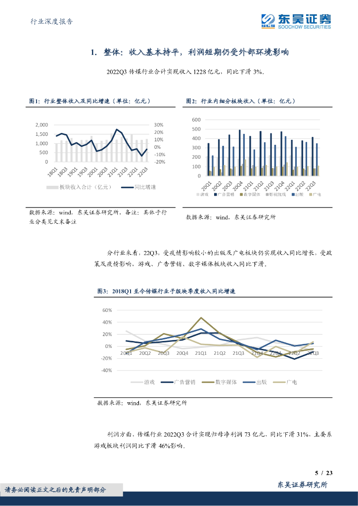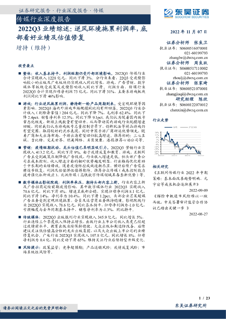 东吴证券:传媒行业2022Q3业绩综述:逆风环境拖累利润率,底部看好业绩及估值修复.pdf