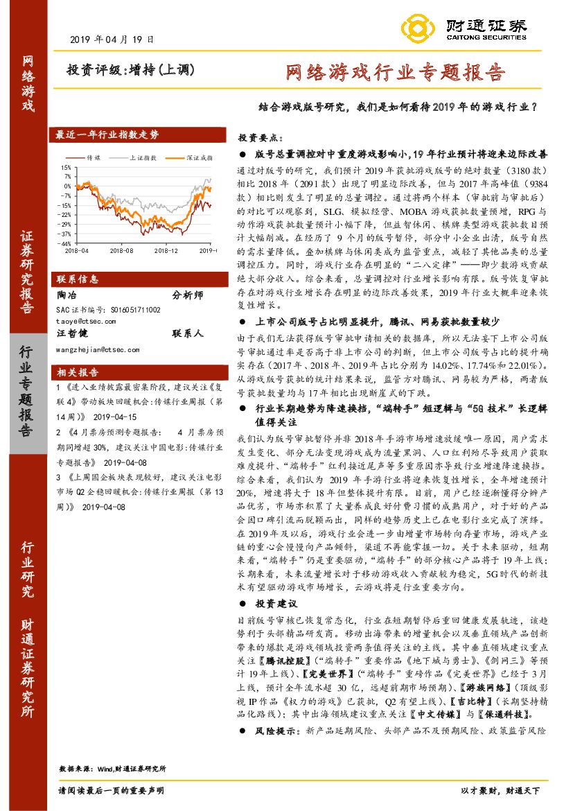 财通证券:网络游戏行业专题报告:结合游戏版号研究,我们是如何看待2019年的游戏行业?.pdf