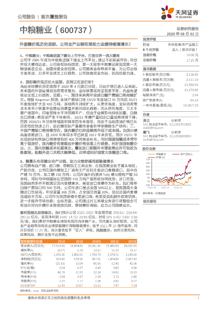 天风证券:中粮糖业(600737)-外盘糖价现历史底部,公司全产业链布局助力业绩持续高增长!.pdf