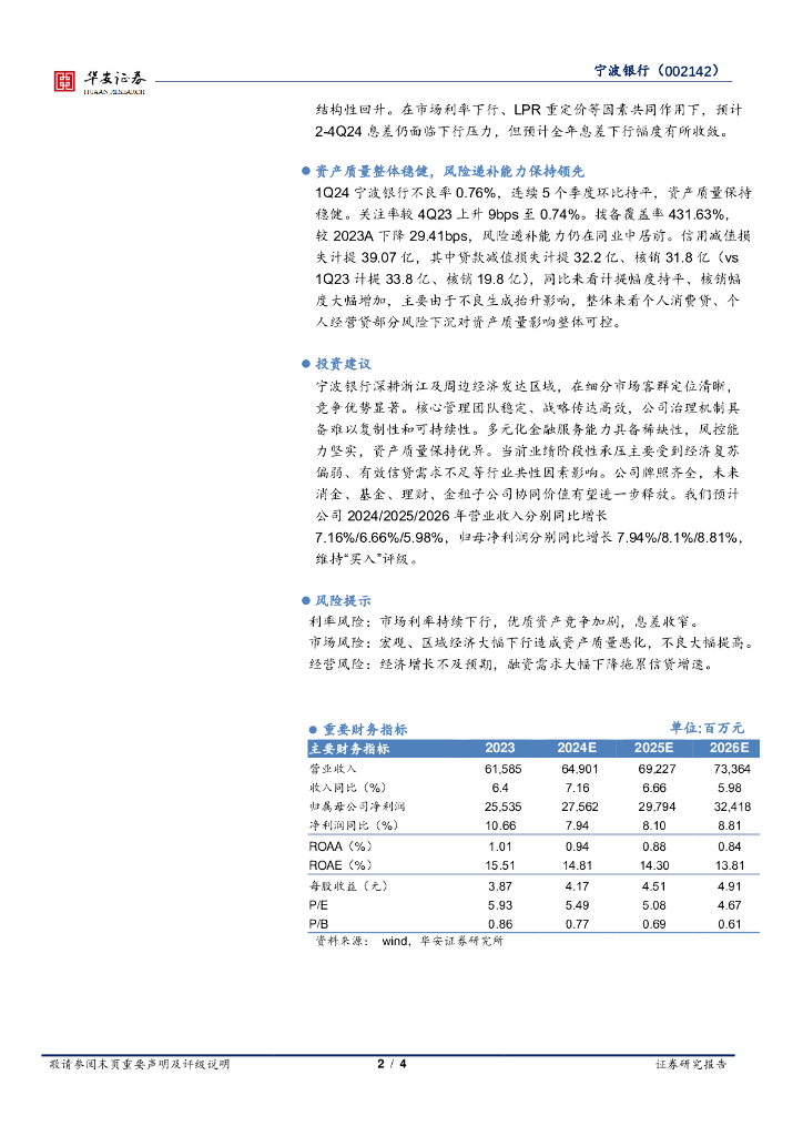 华安证券:宁波银行(002142)-息差企稳回升,降本增效成果显著.pdf