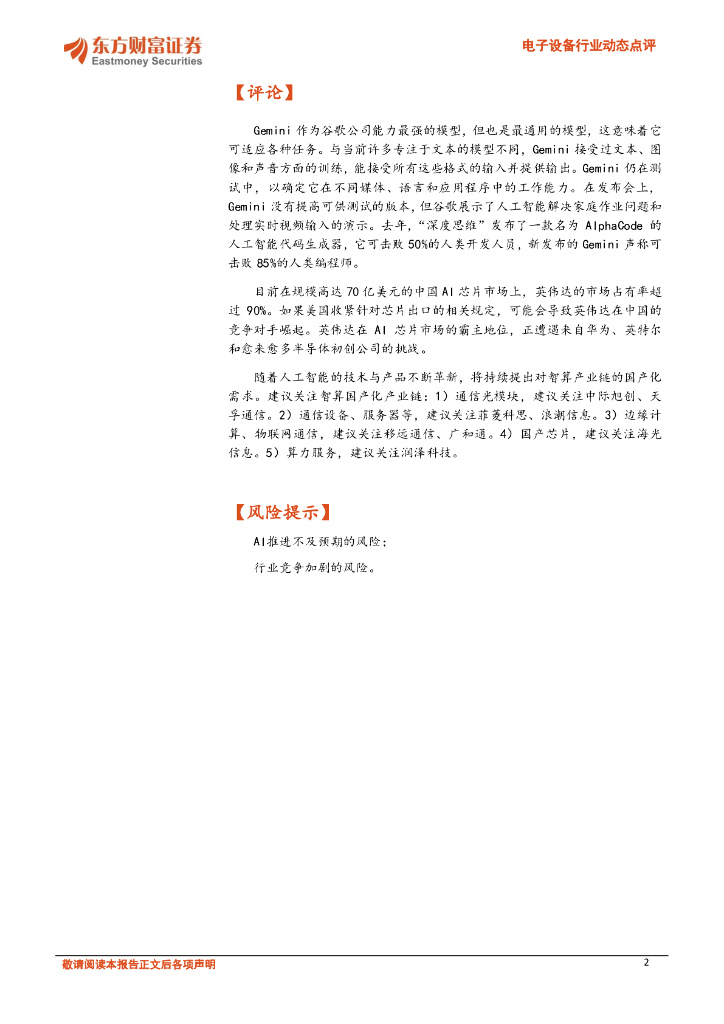 东方财富证券:电子设备行业动态点评:谷歌发布Gemini,关注智算国产化.pdf