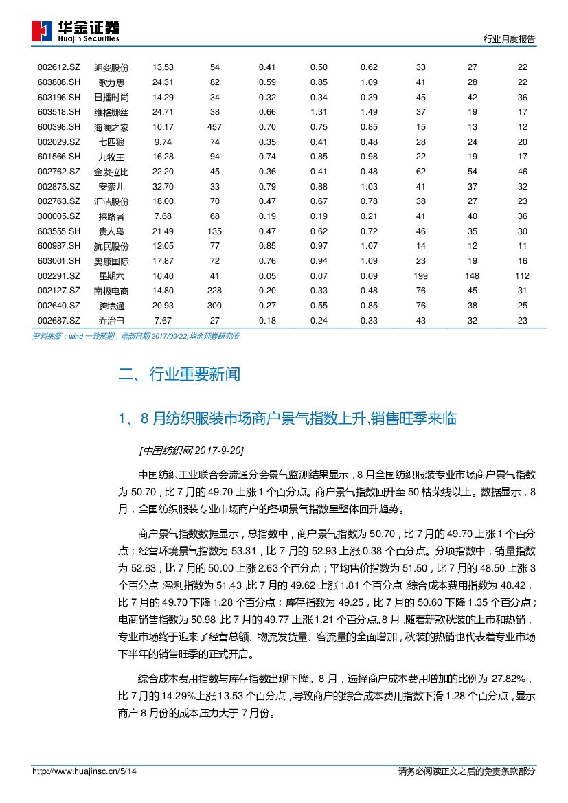 华金证券:纺织服装行业周度报告:8月纺织服装市场商户景气指数上升,销售旺季来临.pdf