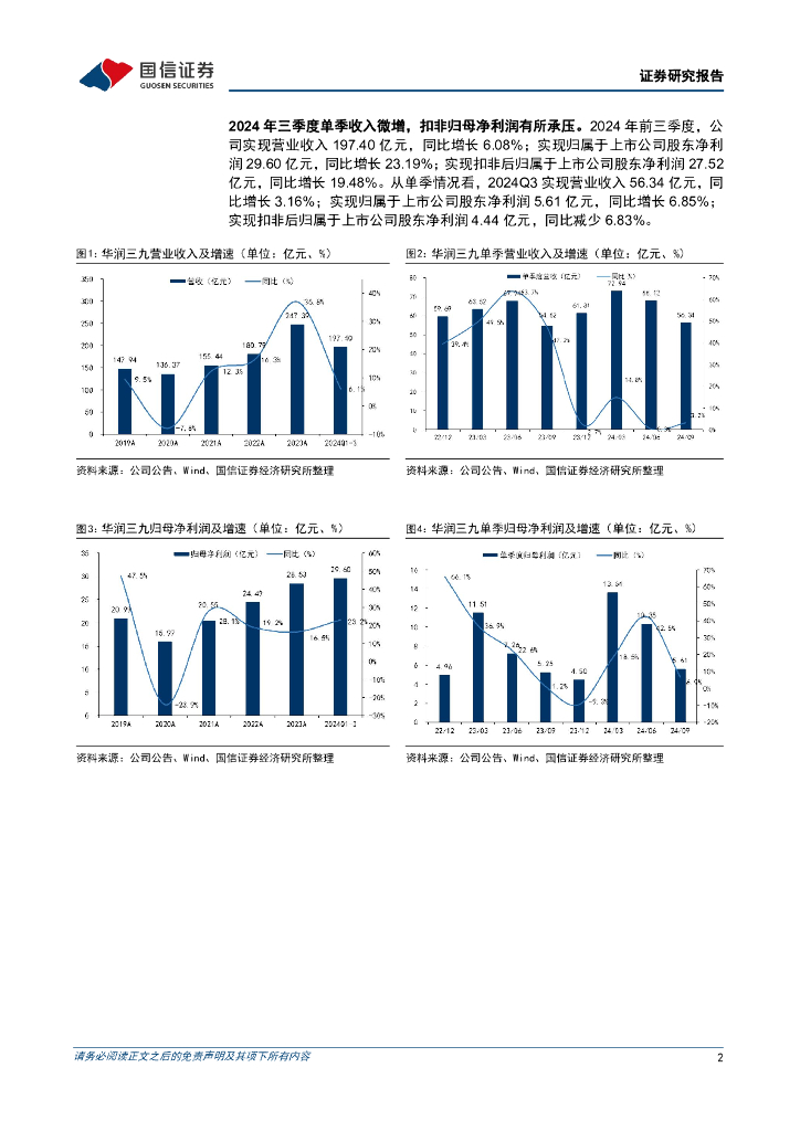 国信证券:华润三九(000999)-2024年三季报点评:短期利润端有所承压,长期中药全产业链布局持续推进.pdf