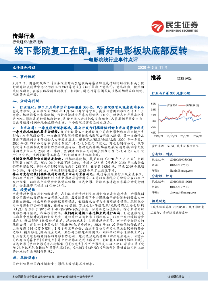 民生证券:电影院线行业事件点评:线下影院复工在即,看好电影板块底部反转.pdf