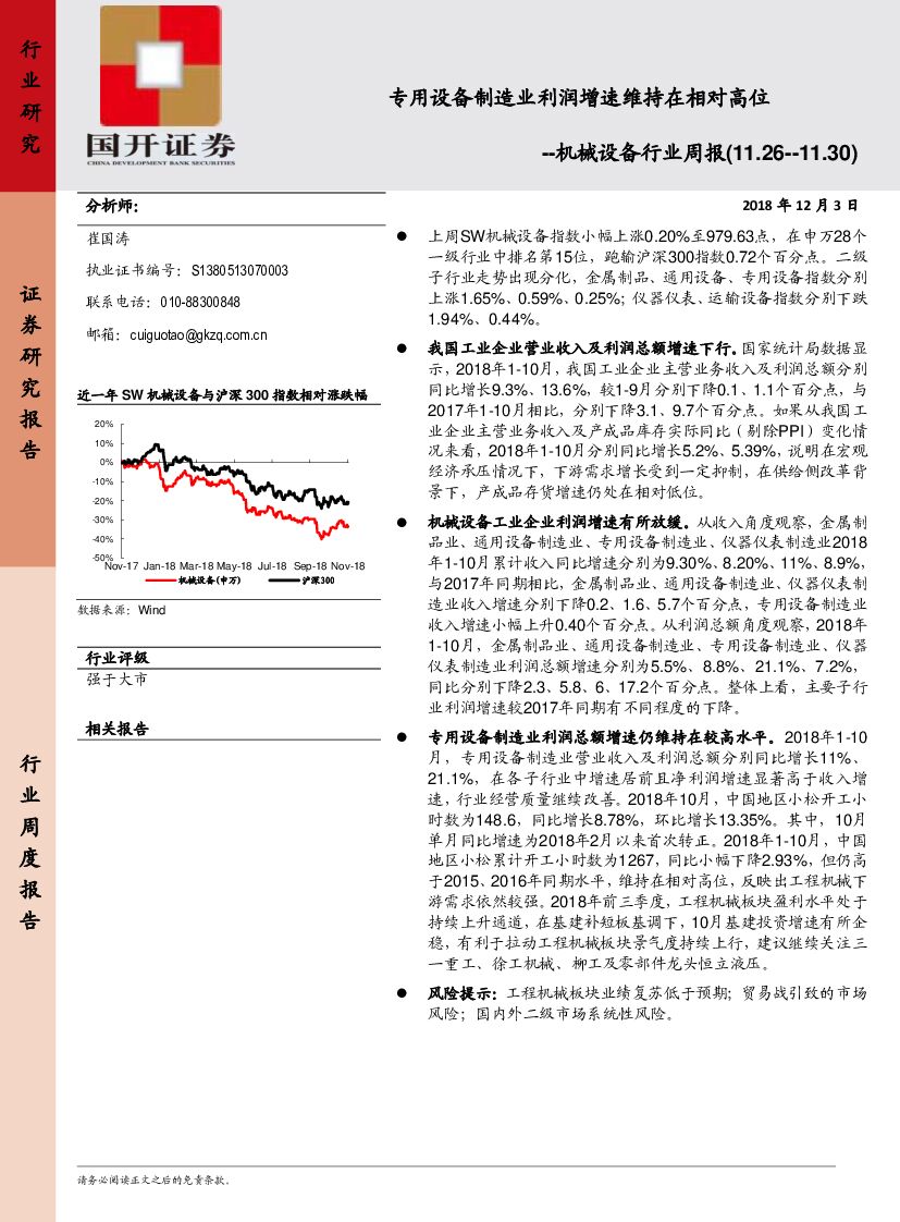 国开证券:机械设备行业周报:专用设备制造业利润增速维持在相对高位.pdf