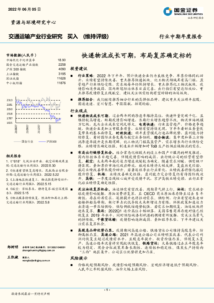 国金证券:交通运输产业行业研究:快递物流成长可期,布局复苏确定标的.pdf