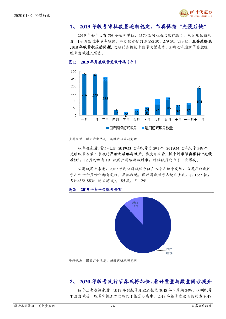 新时代证券:传媒游戏行业专题:复盘2019年版号审批:控制总量强调精品,维持长期看好游戏行业发展.pdf