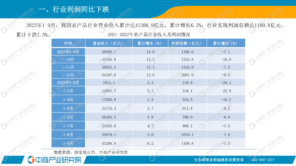 中商产业研究院:中国农产品行业经济运行月度报告(2022年1-9月).pdf