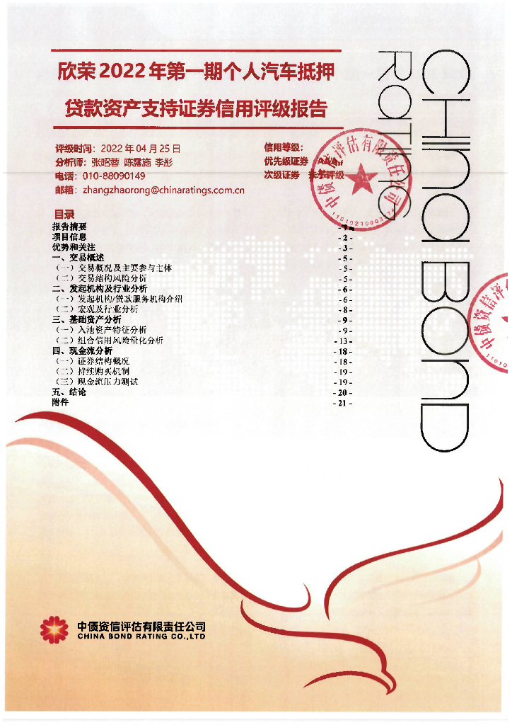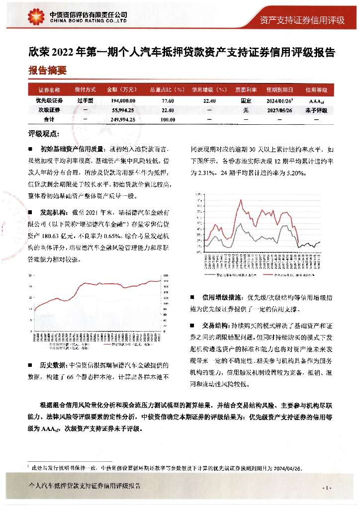 中债资信:欣荣2022年第一期个人汽车抵押贷款资产支持证券信用评级报告.pdf