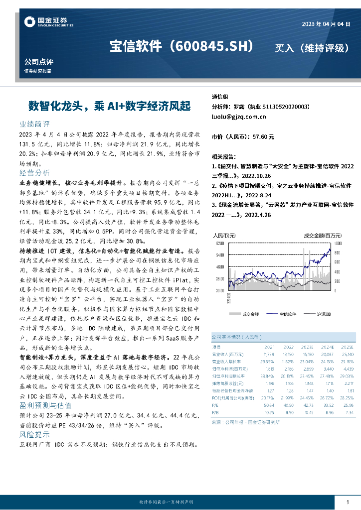 国金证券:宝信软件(600845)-数智化龙头,乘AI+数字经济风起.pdf