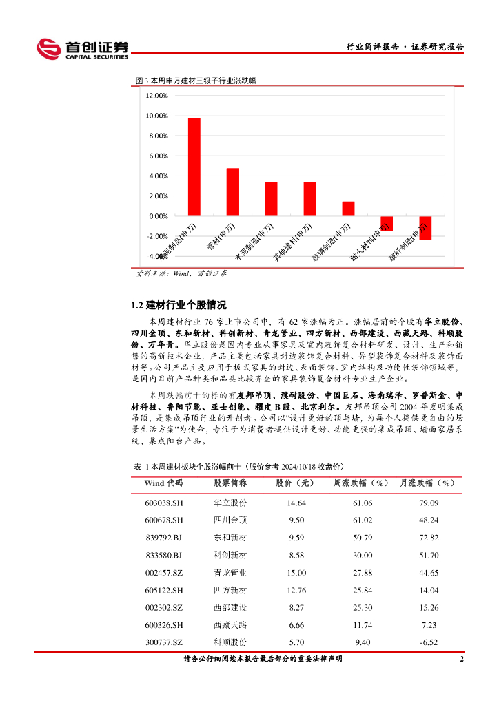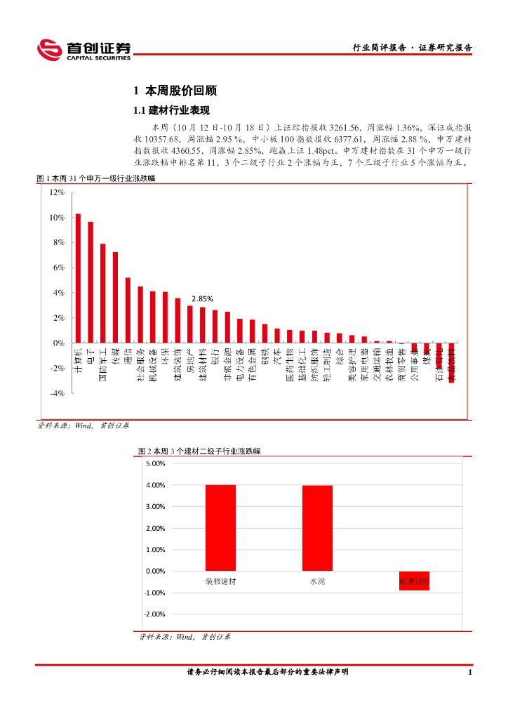 首创证券:建筑材料行业简评报告:行业整体表现良好,预计后市将保持稳定.pdf