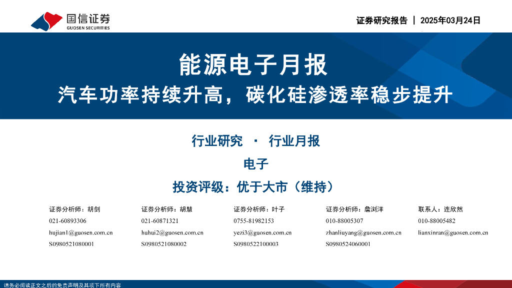 国信证券:能源电子月报:汽车功率持续升高,碳化硅渗透率稳步提升.pdf