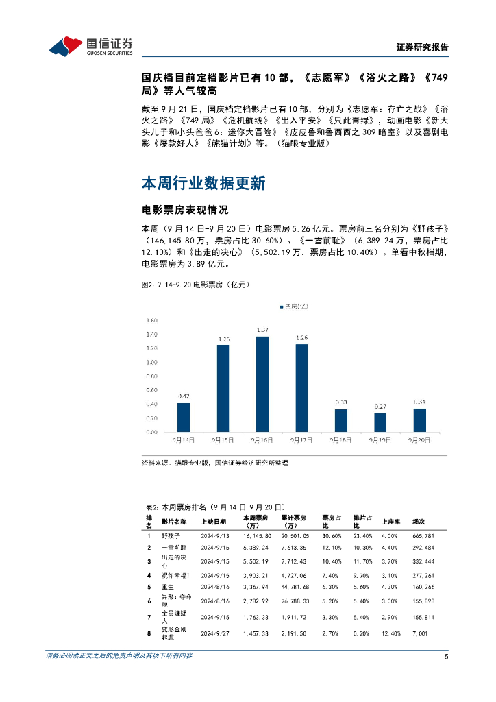 国信证券:传媒互联网行业周报:9月游戏版号发放、国庆档来临,持续看好游戏及影视行业机会