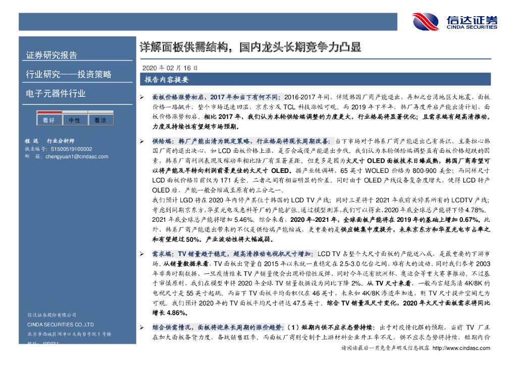 信达证券:电子元器件行业:详解面板供需结构,国内龙头长期竞争力凸显.pdf
