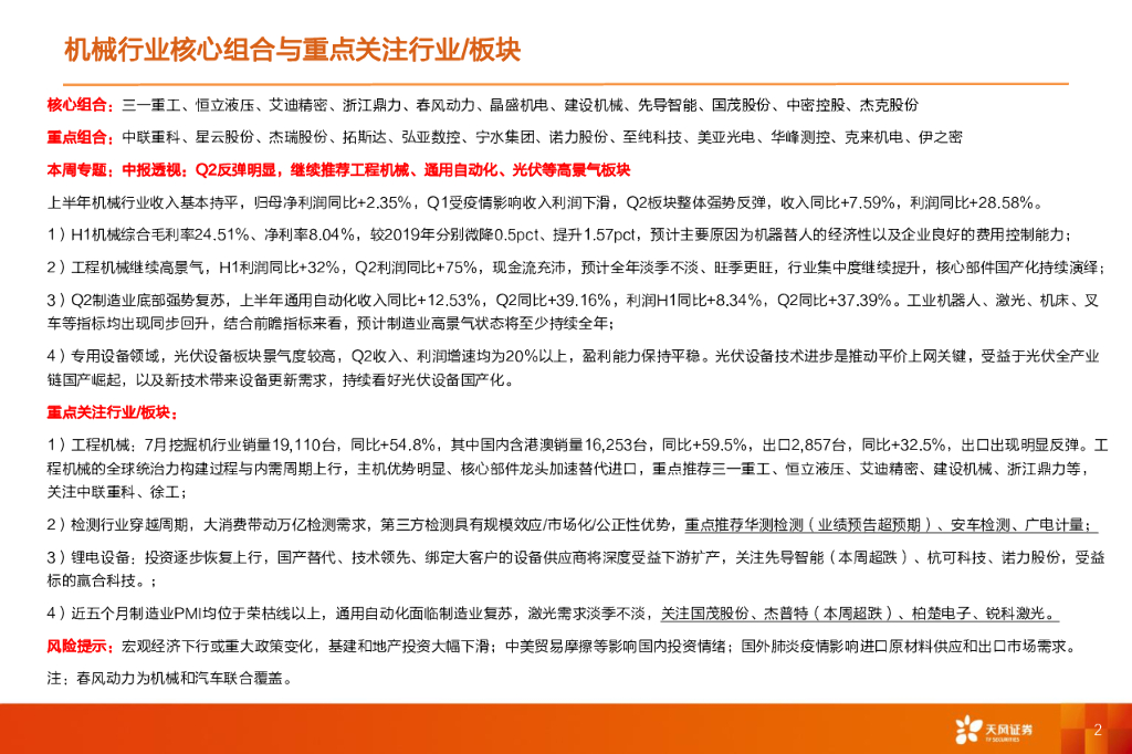 天风证券:机械设备-中报透视:Q2反弹明显,继续推荐工程机械、通用自动化、光伏等高景气板块.pdf