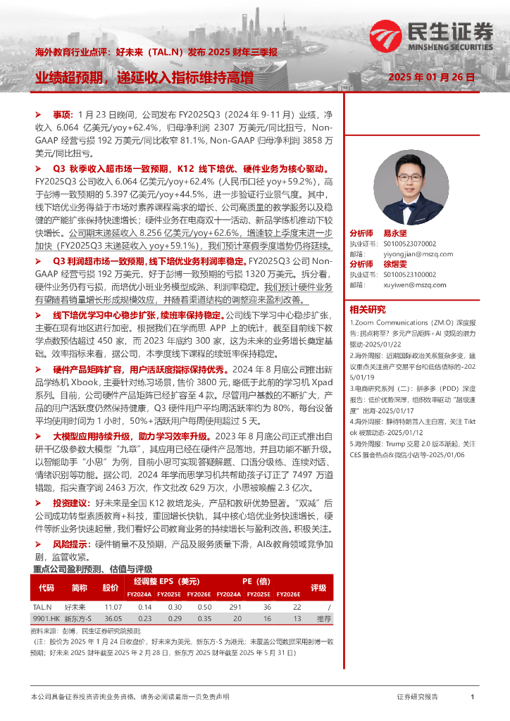 民生证券:海外教育行业点评:好未来发布2025财年三季报:业绩超预期,递延收入指标维持高增.pdf