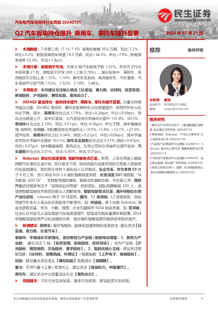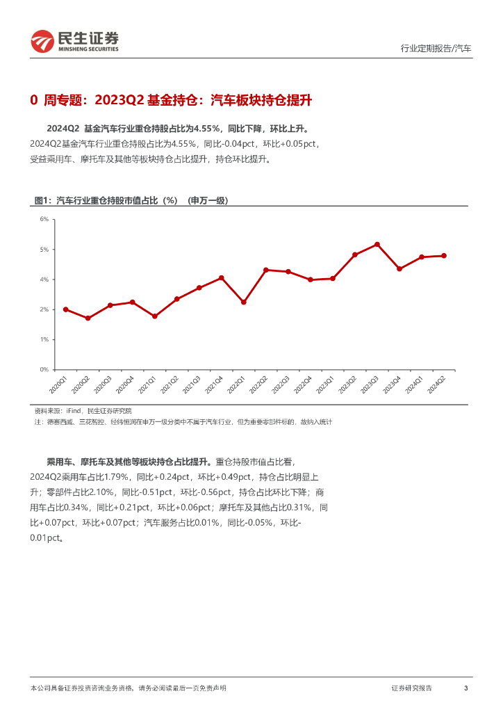 民生证券:汽车和汽车零部件行业周报:Q2汽车板块持仓提升乘用车、摩托车提升显著.pdf