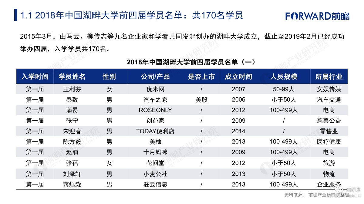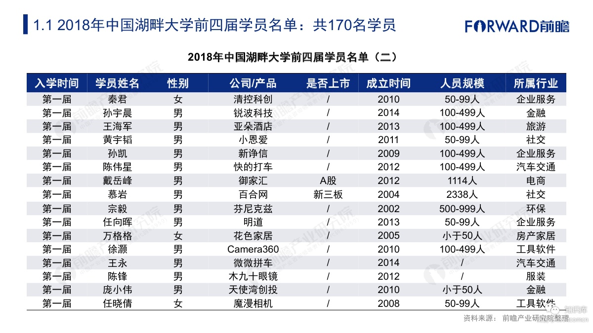 前瞻产业研究院:2018年中国湖畔大学学员名单及行业背景.pdf
