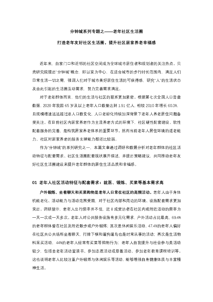 贝壳研究院:分钟城系列专题之——老年社区生活圈.pdf