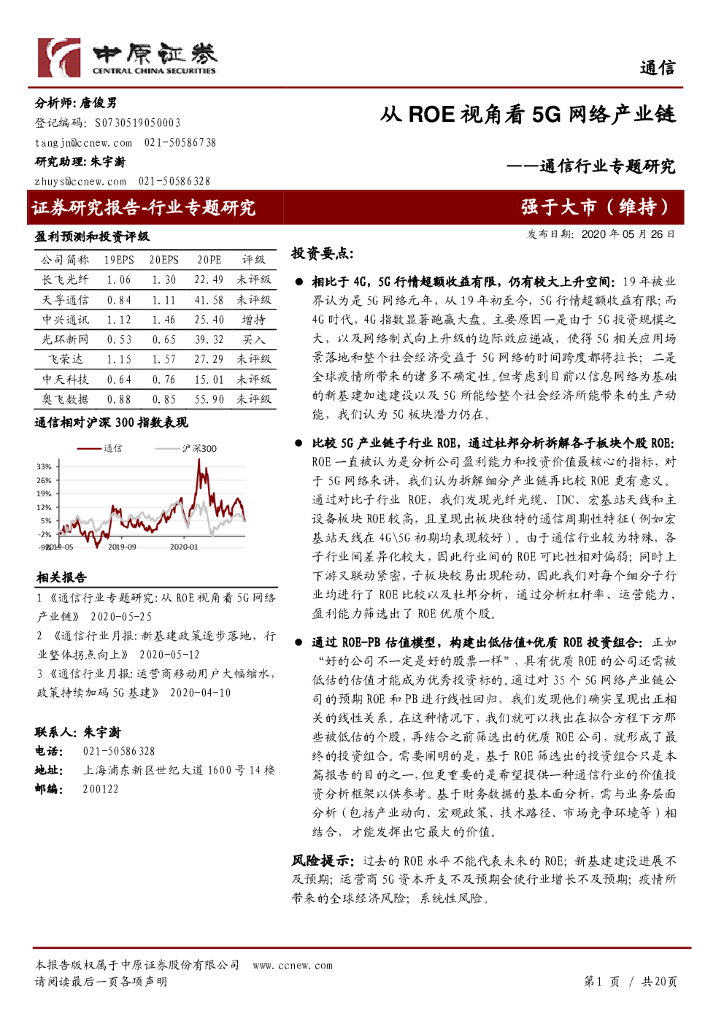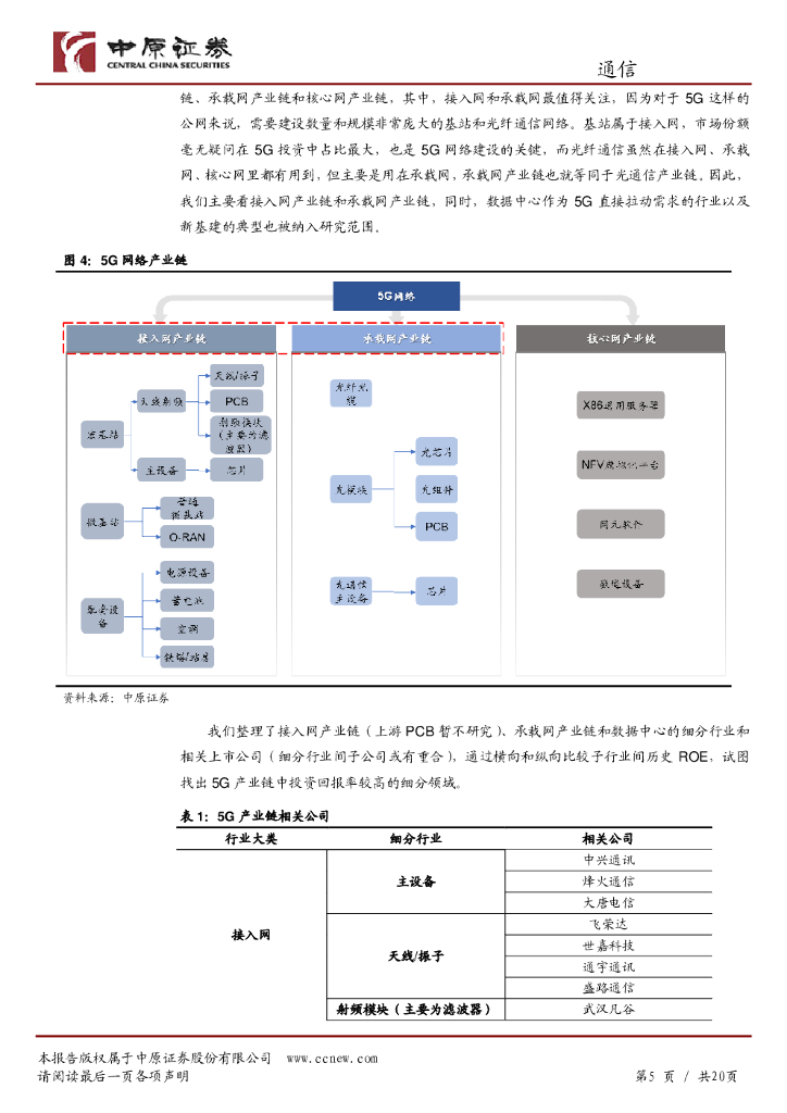 中原证券:通信行业专题研究:从ROE视角看5G网络产业链.pdf