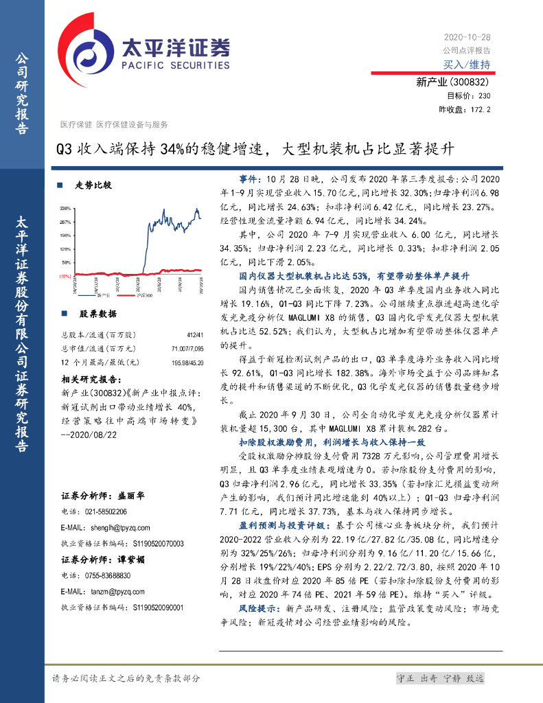 太平洋证券:新产业(300832)-Q3收入端保持34%的稳健增速,大型机装机占比显著提升.pdf