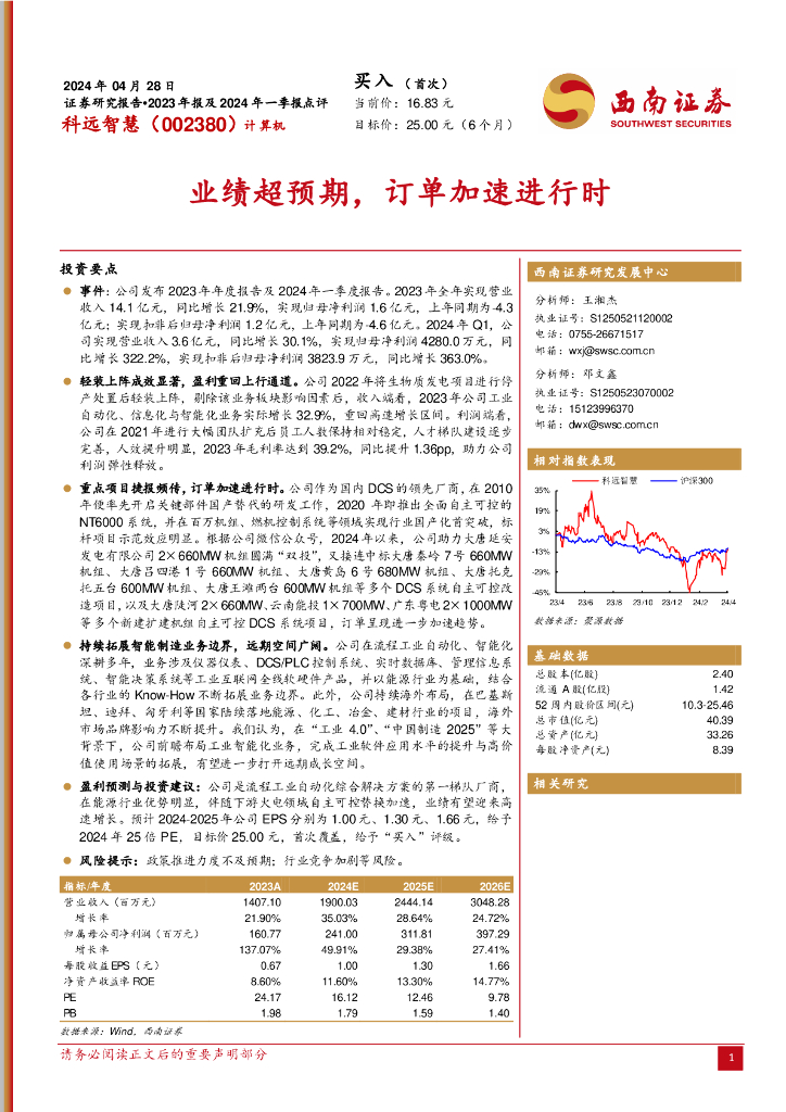 西南证券:科远智慧(002380)-业绩超预期,订单加速进行时.pdf