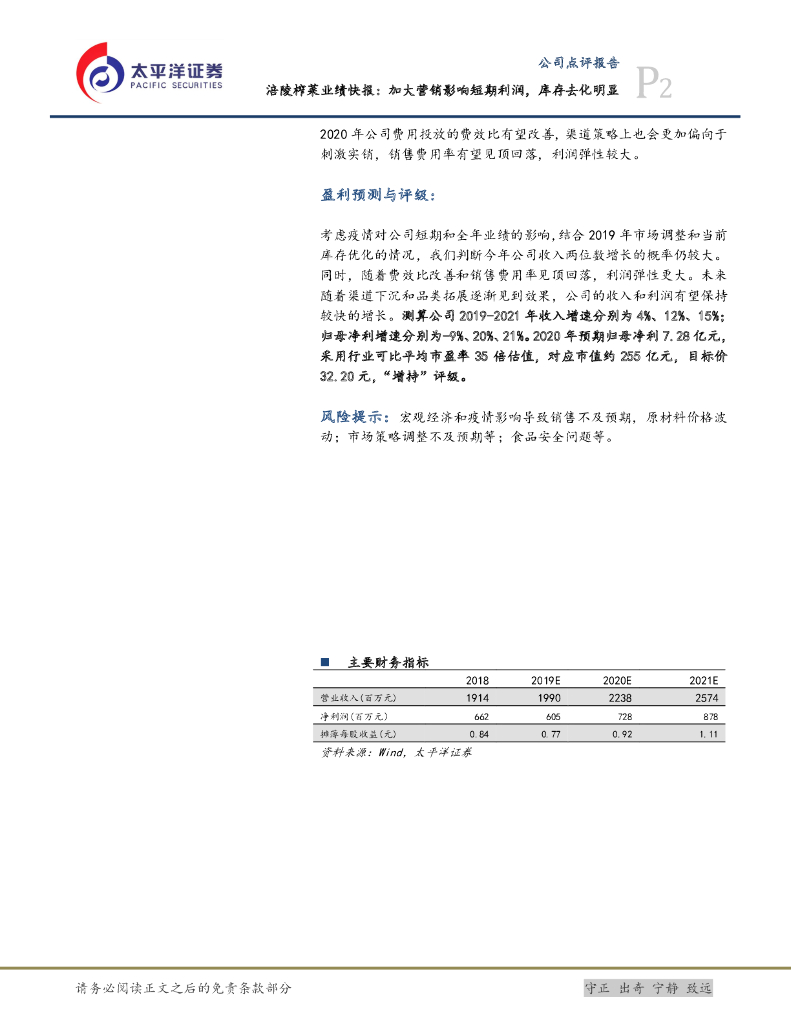 太平洋证券:涪陵榨菜业绩快报:加大营销影响短期利润,库存去化明显.pdf