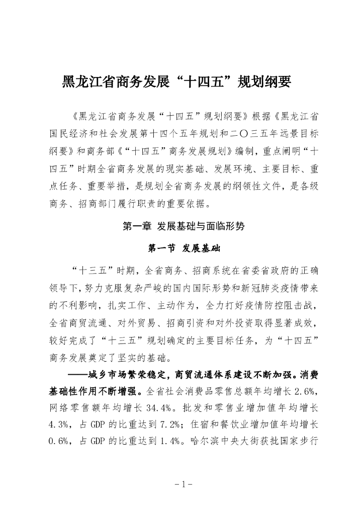 黑龙江省商务发展“十四五”规划纲要.pdf