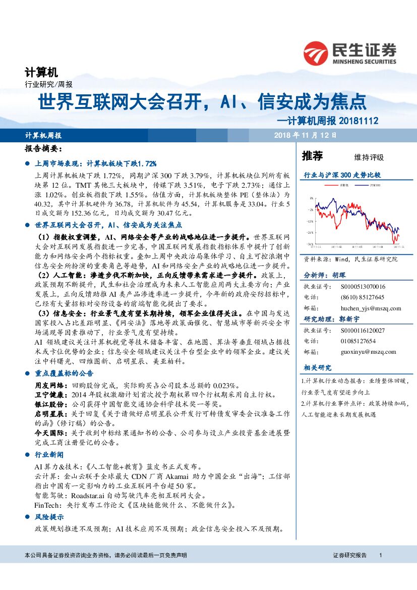 民生证券:计算机周报:世界互联网大会召开,AI、信安成为焦点.pdf