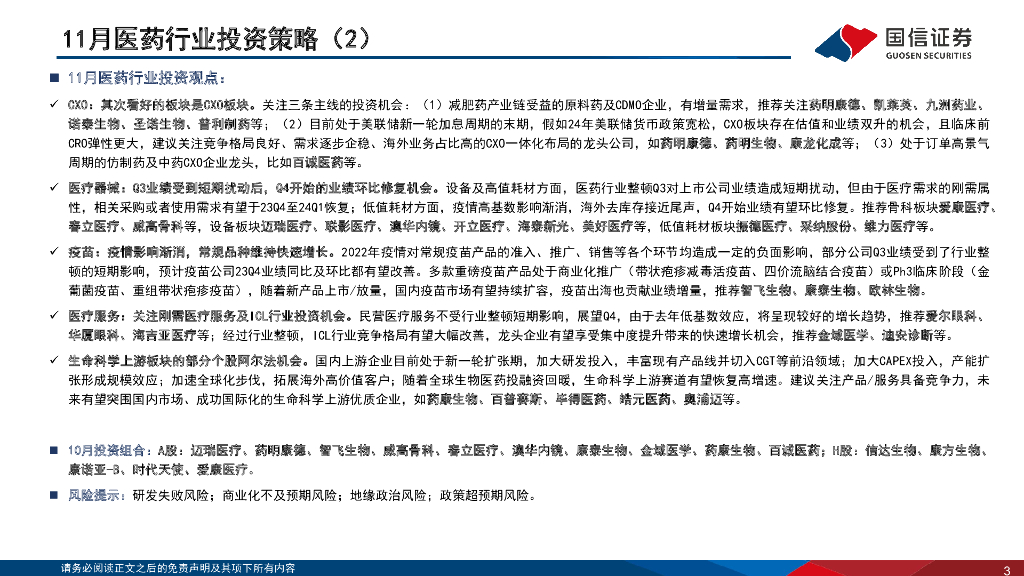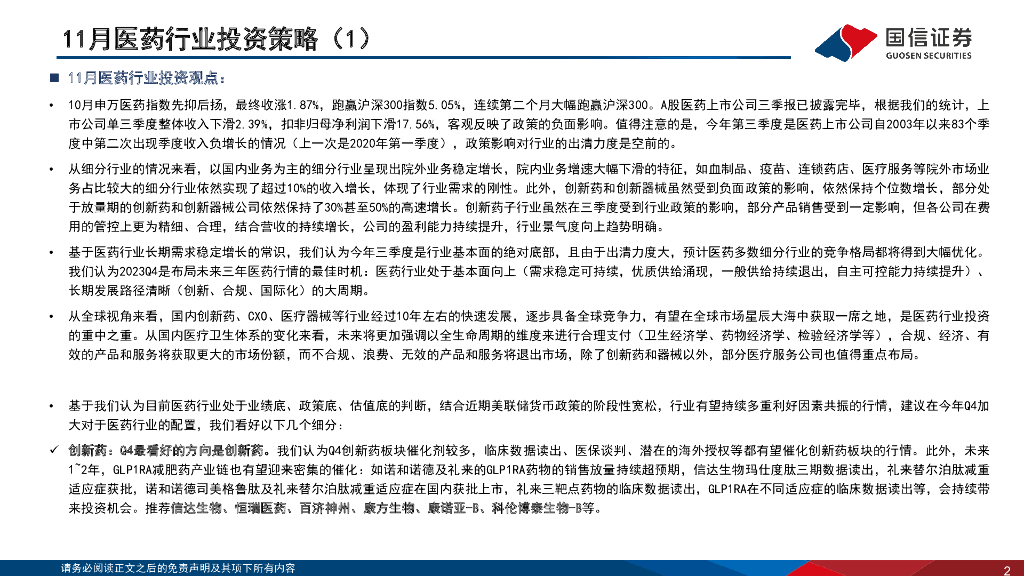 国信证券:医药生物行业2023年11月投资策略:季报业绩披露完毕,建议持续加大医药配置.pdf