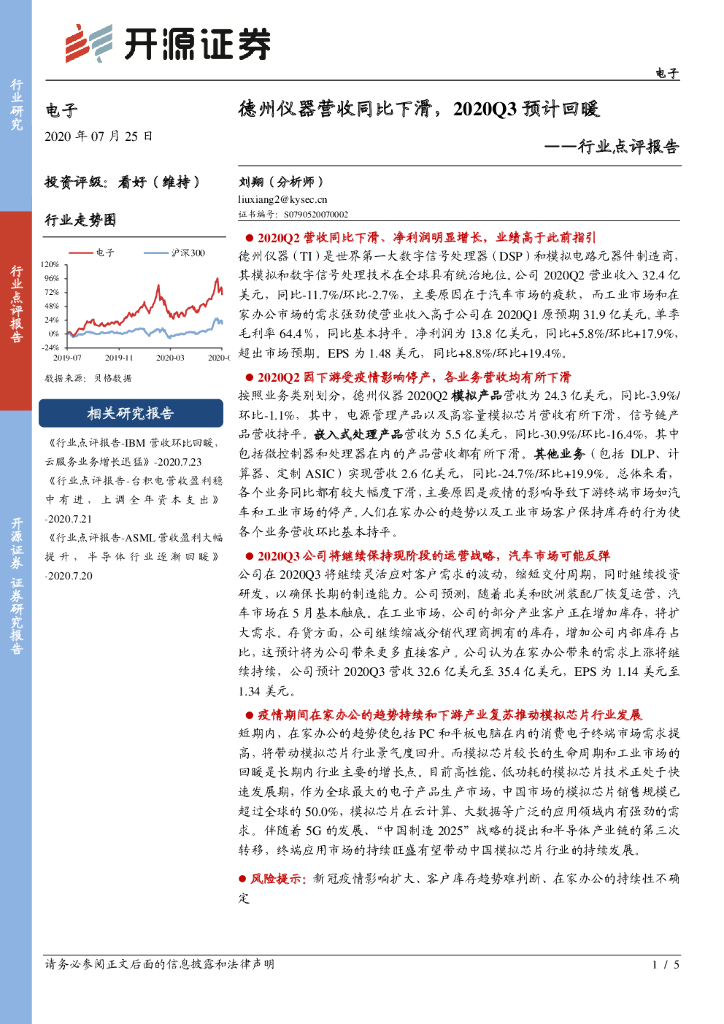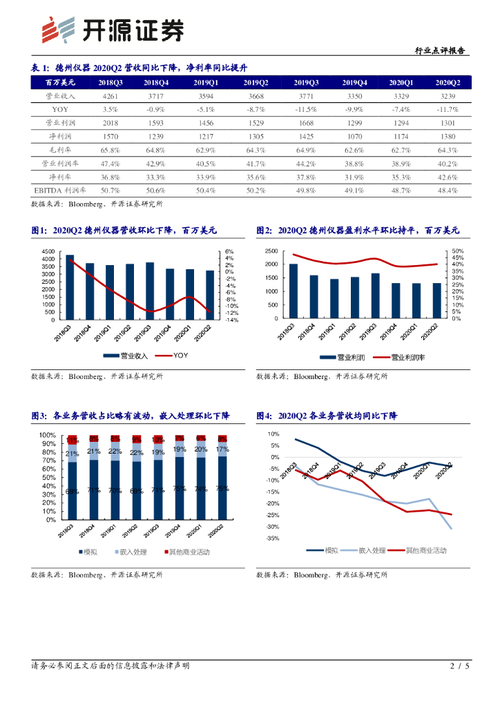 开源证券:电子行业点评报告:德州仪器营收同比下滑,2020Q3预计回暖.pdf